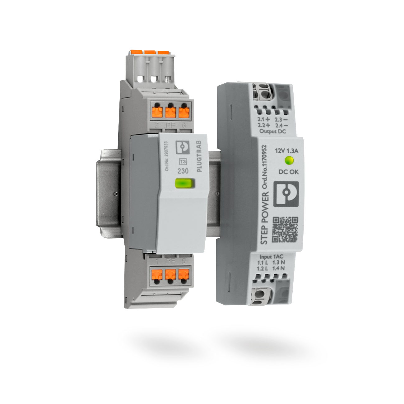 CBM电子式断路器、PLT-SEC电涌保护器以及可靠耐用的24 V TRIO POWER电源搭配使用可打造坚实耐用的供电系统,该方案总宽仅为101 mm,集保护、电源和负载保护功能于一体,采用直插式连接技术,安装十分简便。